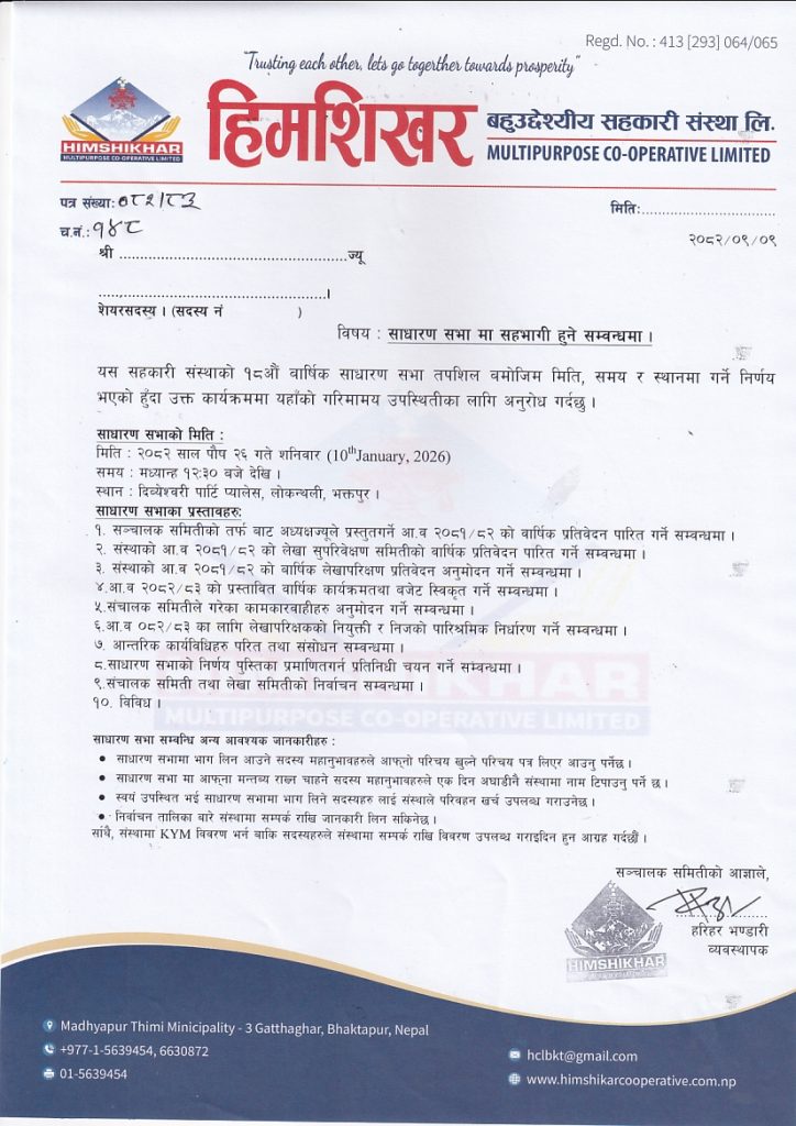 This is to inform you that, as decided by the Board of Directors, the 18th Annual General Meeting of this cooperative institution will be held as per the following schedule. All respected members are kindly requested to attend.